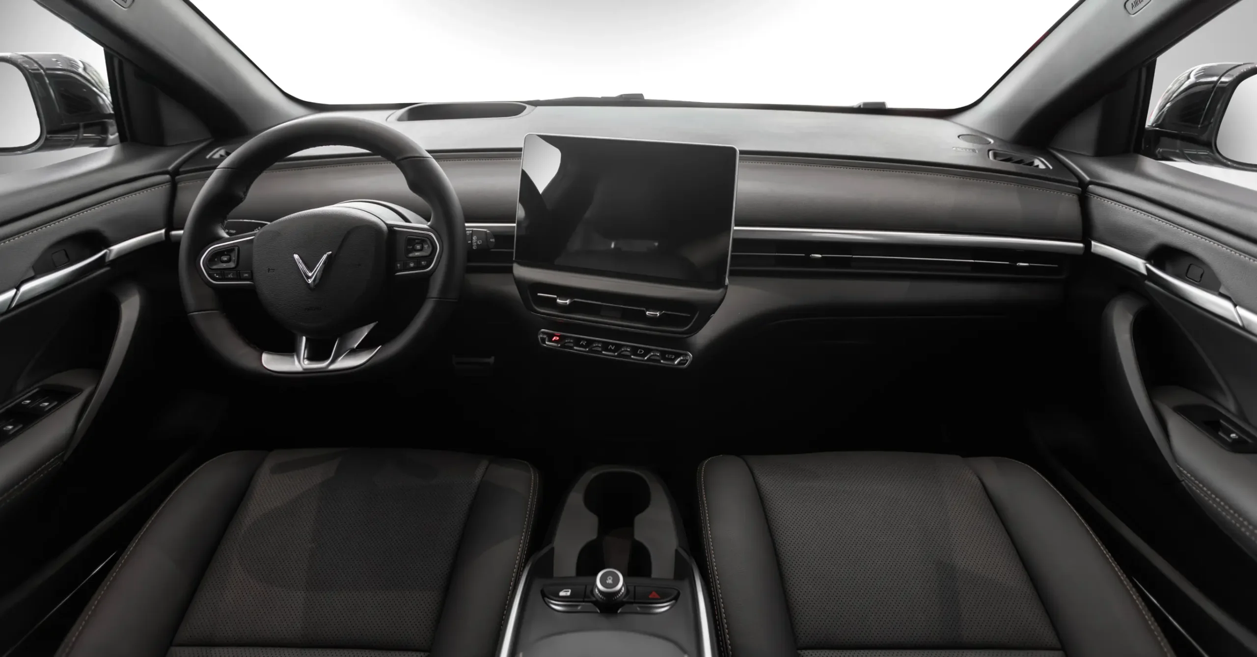 Sử dụng nhựa nhám, có khe lấy gió làm mát cho điều hoà và các chi tiết khác, Radar nằm trong gói ADAS cũng tích hợpLogo VinFast
